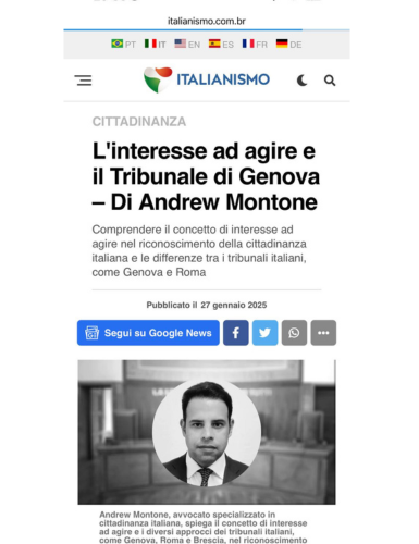 Além disso, os clientes são representados também pelo avvocato Valerio Piccolo, advogado italiano cassazionista especialista em cidadania italiana e habilitado desde 2013 no albo speciale. Isso traz um grande benefício aos nossos clientes que todas as etapas do reconhecimento sejam realizadas num único lugar. Estamos no coração da cidade de Milão.
